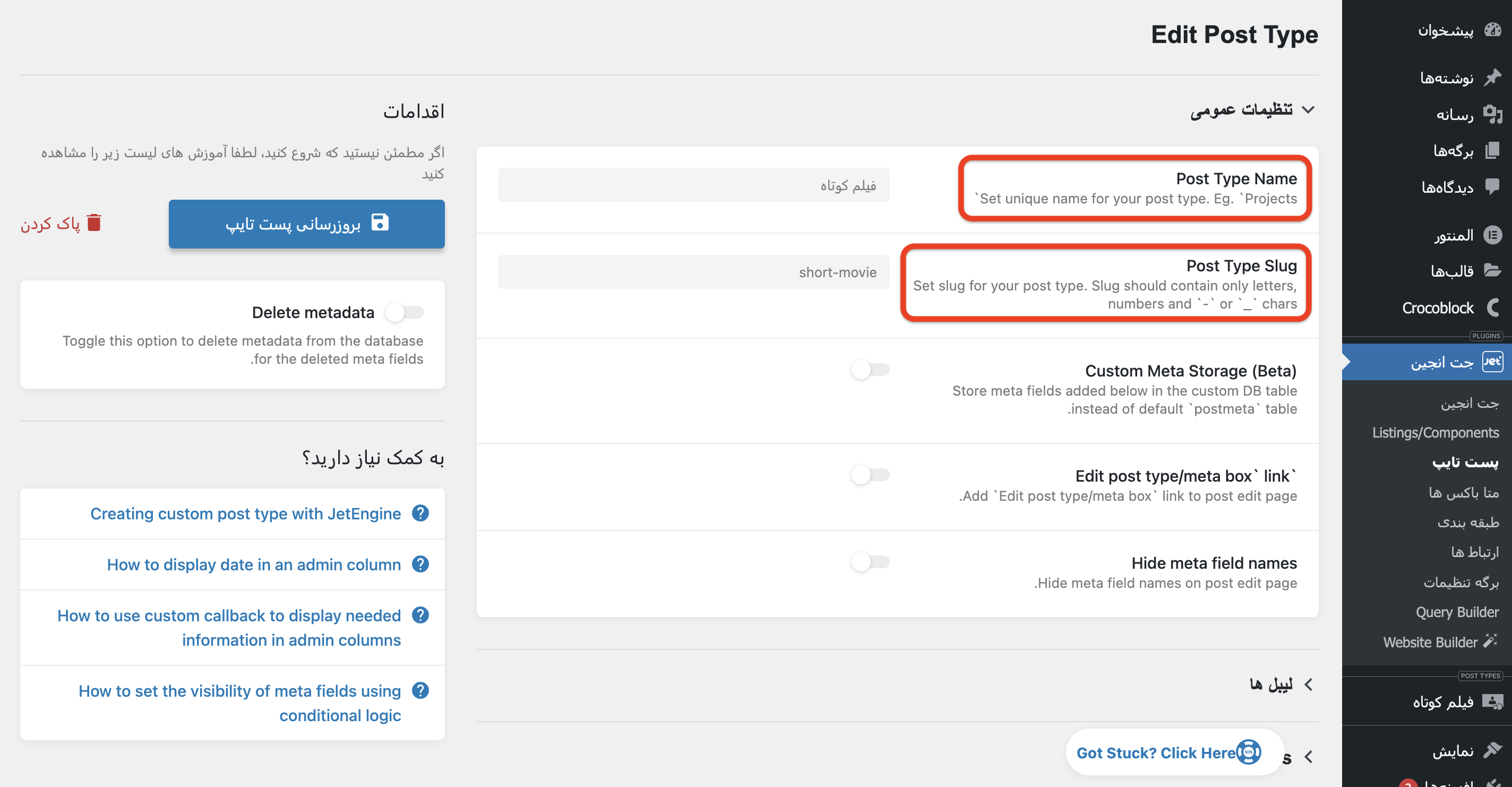 مراحل ساخت پست تایپ سفارشی با افزونه جت انجین